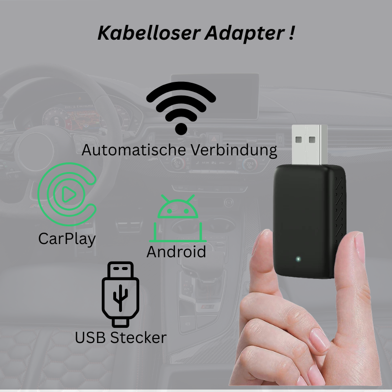 Einfach den kleinen Adapter in den USB-Port stecken, verbinden – und schon bin ich kabellos mit meinem Smartphone verbunden. Keine Kabel mehr, die im Weg hängen oder mich beim Fahren stören. Jetzt kann ich meine Lieblingsapps, Navigation und Musik ganz bequem nutzen, ohne Kabelwirrwarr.