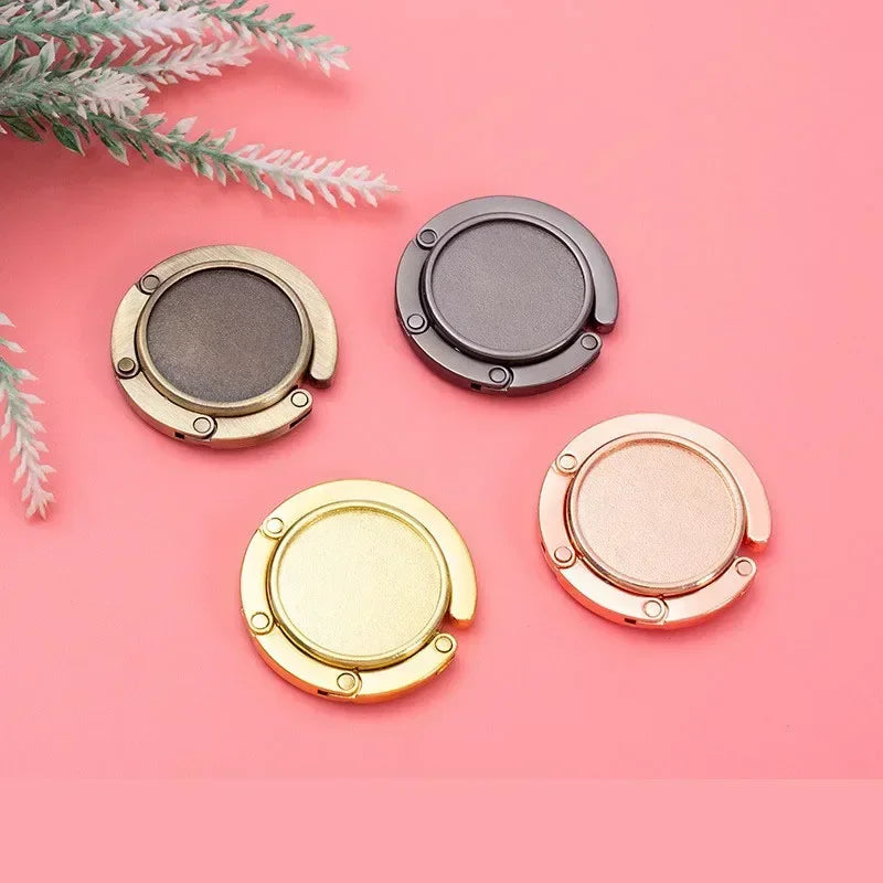 Unser moderner, runder, faltbarer Taschenaufhänger ist die perfekte Begleitung für unterwegs. Das elegante Design passt sich jedem Stil an und lässt sich bequem in der Handtasche verstauen.